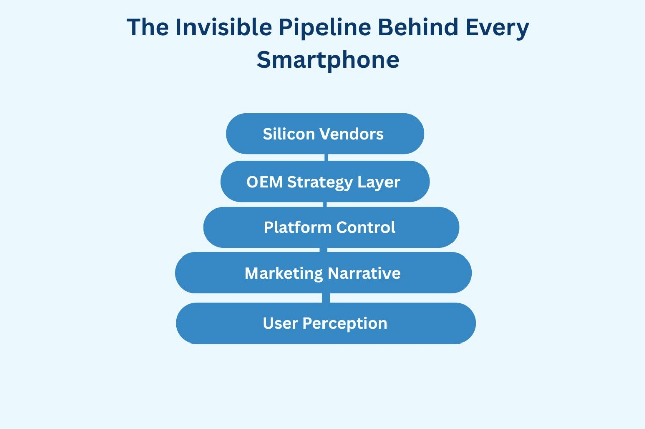 What users experience as “brand personality” is actually the output of a long, invisible pipeline. Silicon vendors, component suppliers, OS developers, carriers, and regulators all push the product in subtle directions long before marketing gets involved.