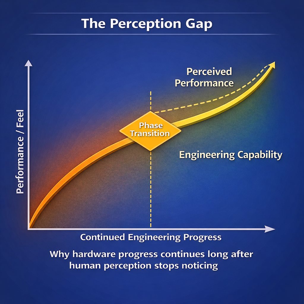 Why hardware progress continues long after human perception stops noticing