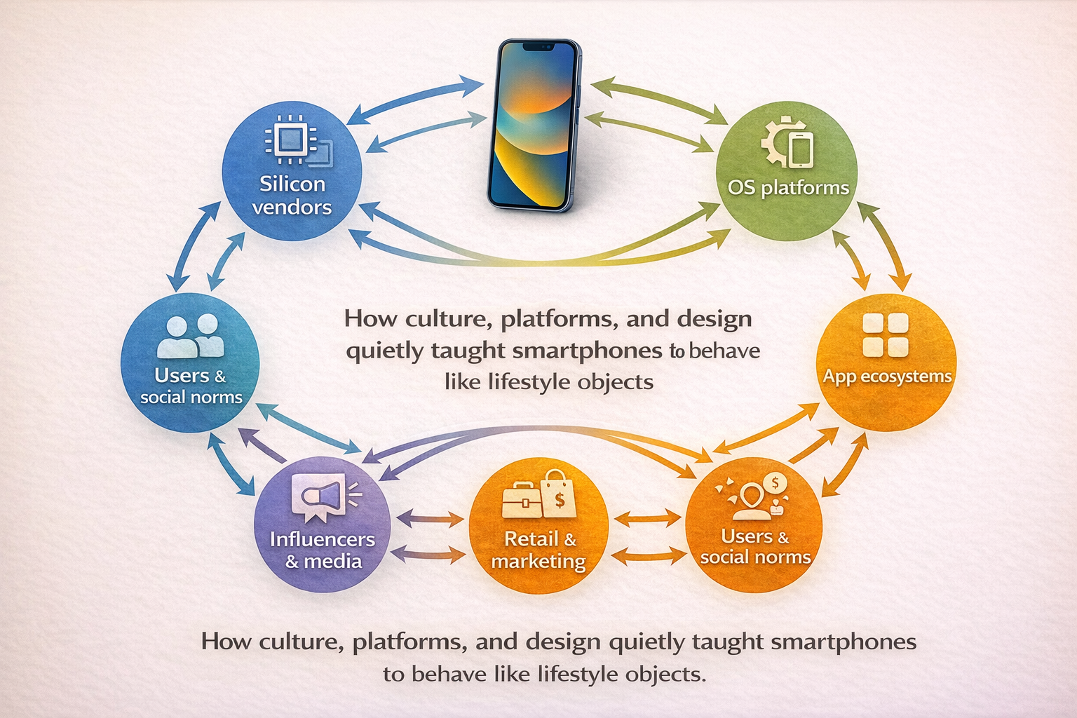 Smartphones didn’t become lifestyle objects in isolation. They were trained into it by an ecosystem that quietly aligned incentives across silicon vendors, OS developers, fashion cycles, retail design, and content platforms. Each layer reinforced the idea that the phone is not finished at purchase—it’s activated socially.
